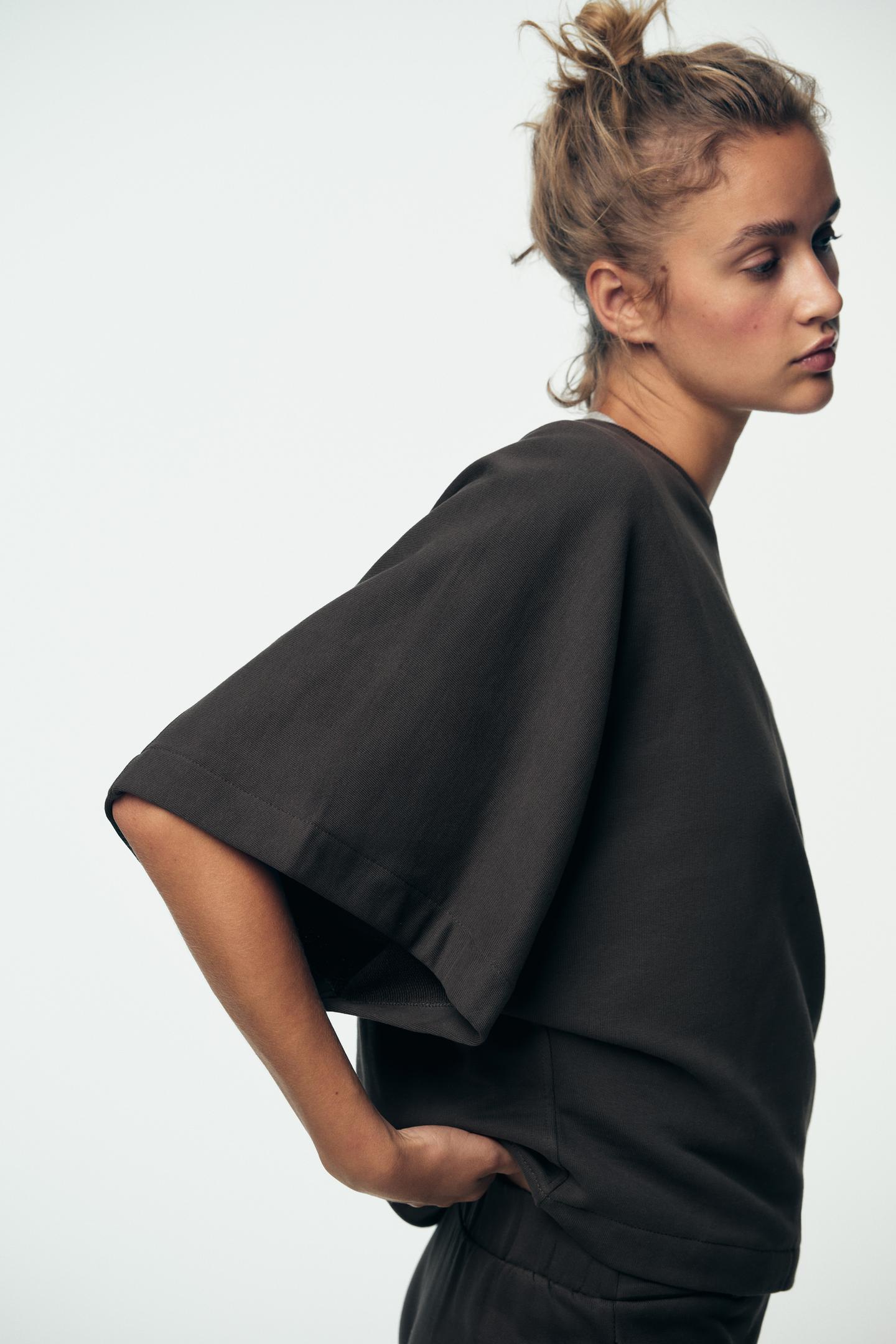 Sweatshirt made of spun cotton. Featuring a round neck and short sleeves.