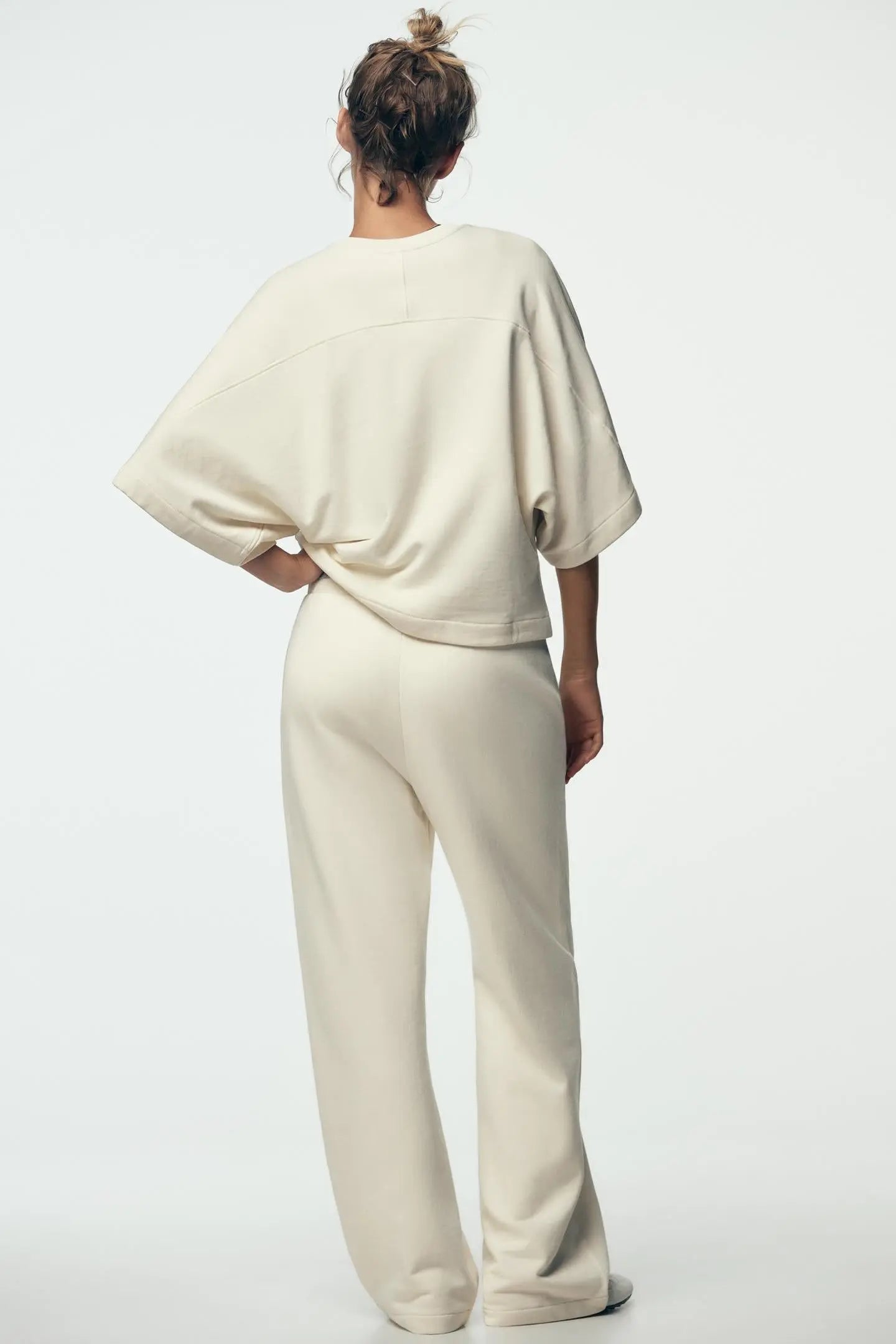 Sweatshirt made of spun cotton. Featuring a round neck and short sleeves.