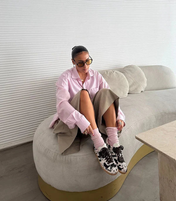 Samba OG vender tilbage i et iøjnefaldende ternet mønster og giver et moderne twist til en klassiker fra 1950’ernes indendørs fodbold. Denne version har en karakteristisk overdel i ponyhår med et gennemgående ternet mønster, suppleret med raffinerede læderdetaljer og et levende for. Kombinationen af materialer i høj kvalitet og et markant design forener traditionelt håndværk med en moderne og udtryksfuld stil. Perfekt til dem, der ønsker sko, der skiller sig ud, samtidig med at de tilbyder den legendariske komfort og alsidighed, som Samba OG er kendt for.