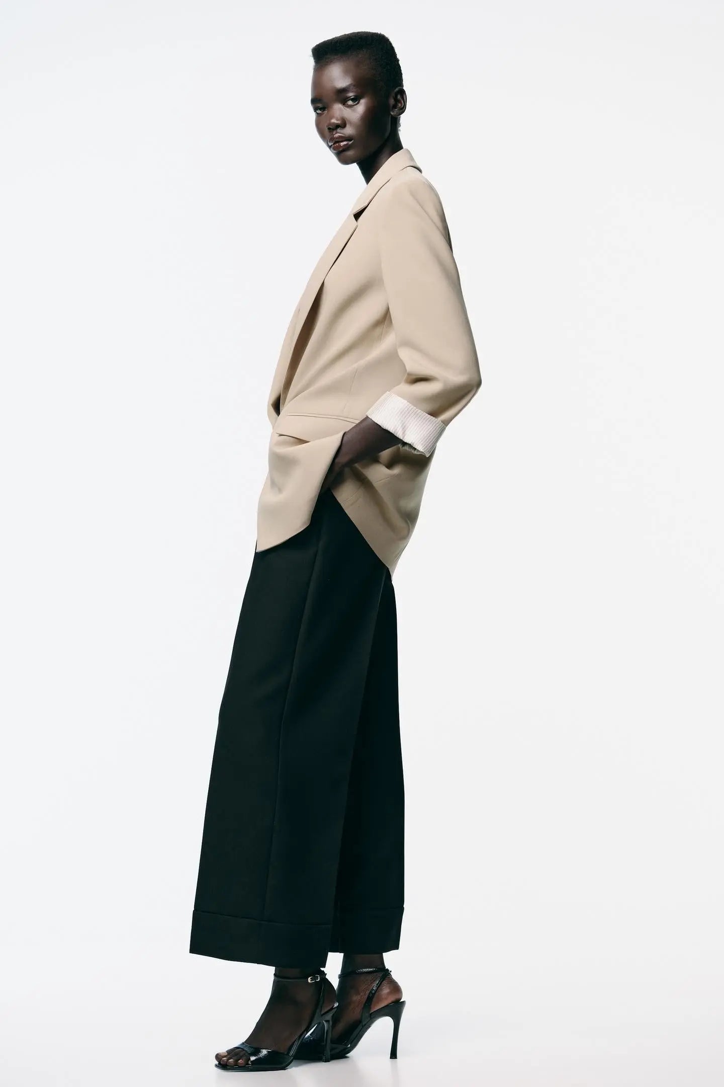 Blazer with a lapel collar and long sleeves with shoulder pads